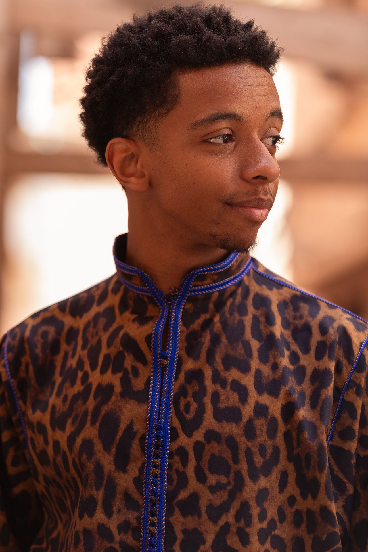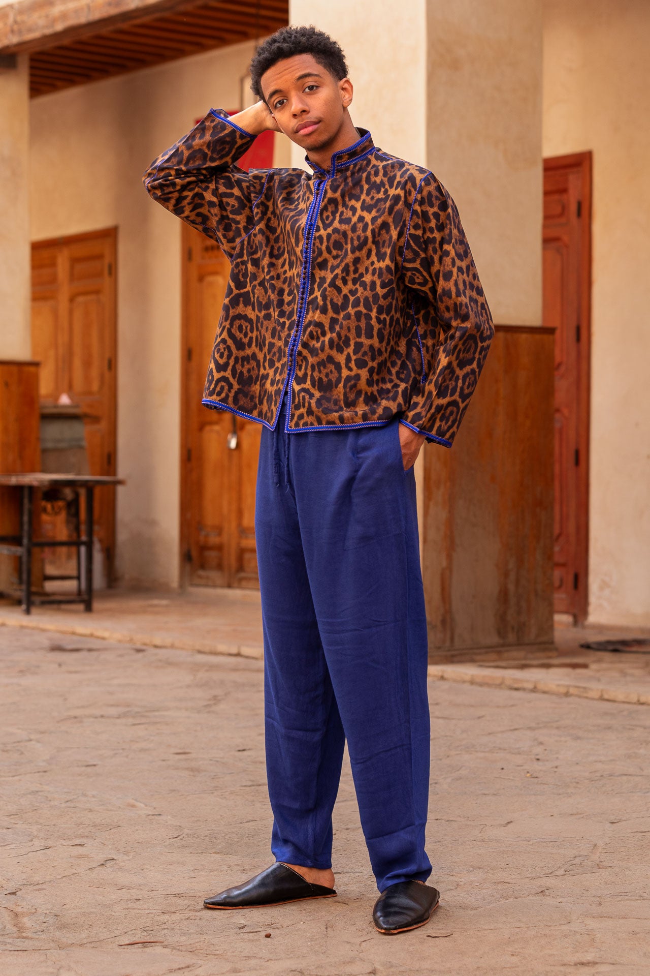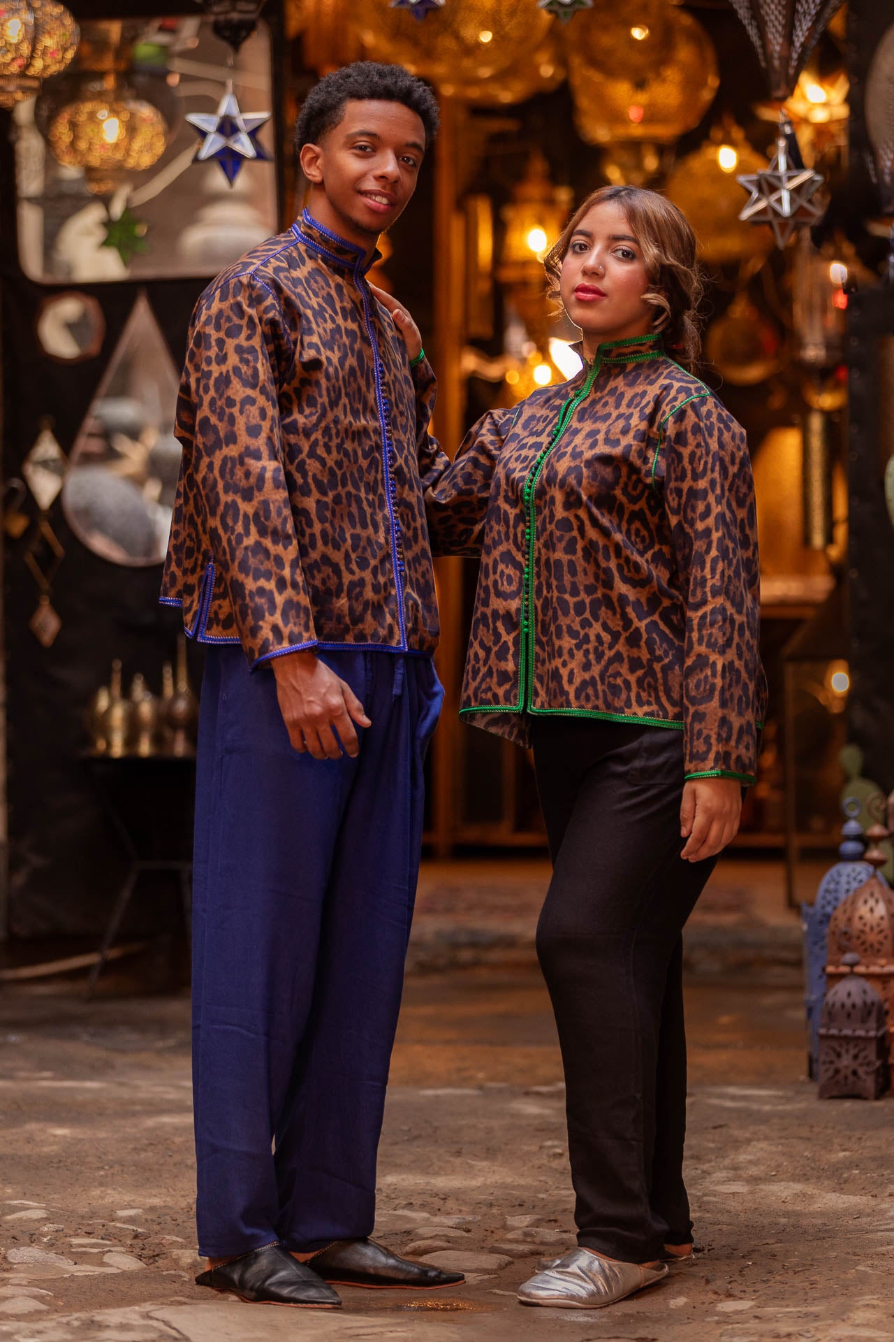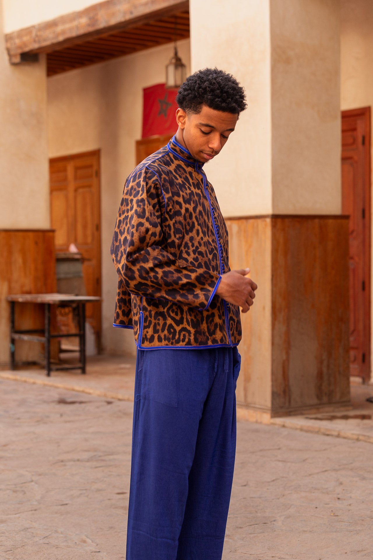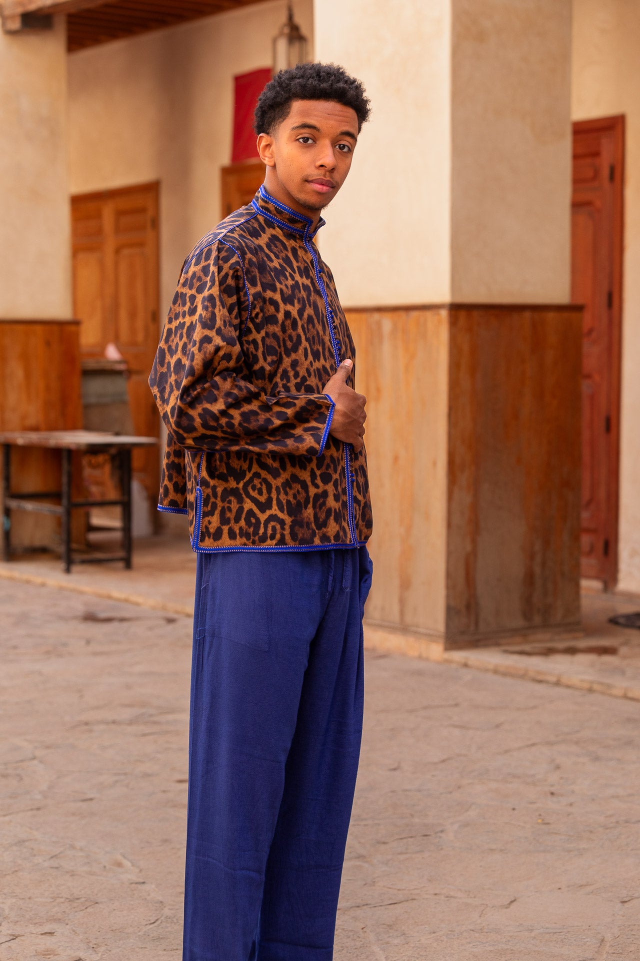 Apportez une touche audacieuse et élégante à votre garde-robe avec notre veste Léo Addict, une création unique qui célèbre la force. travaillée à la main au Maroc, cette pièce associe l’imprimé léopard sauvage à des finitions bleu royale raffinées pour un contraste saisissant.