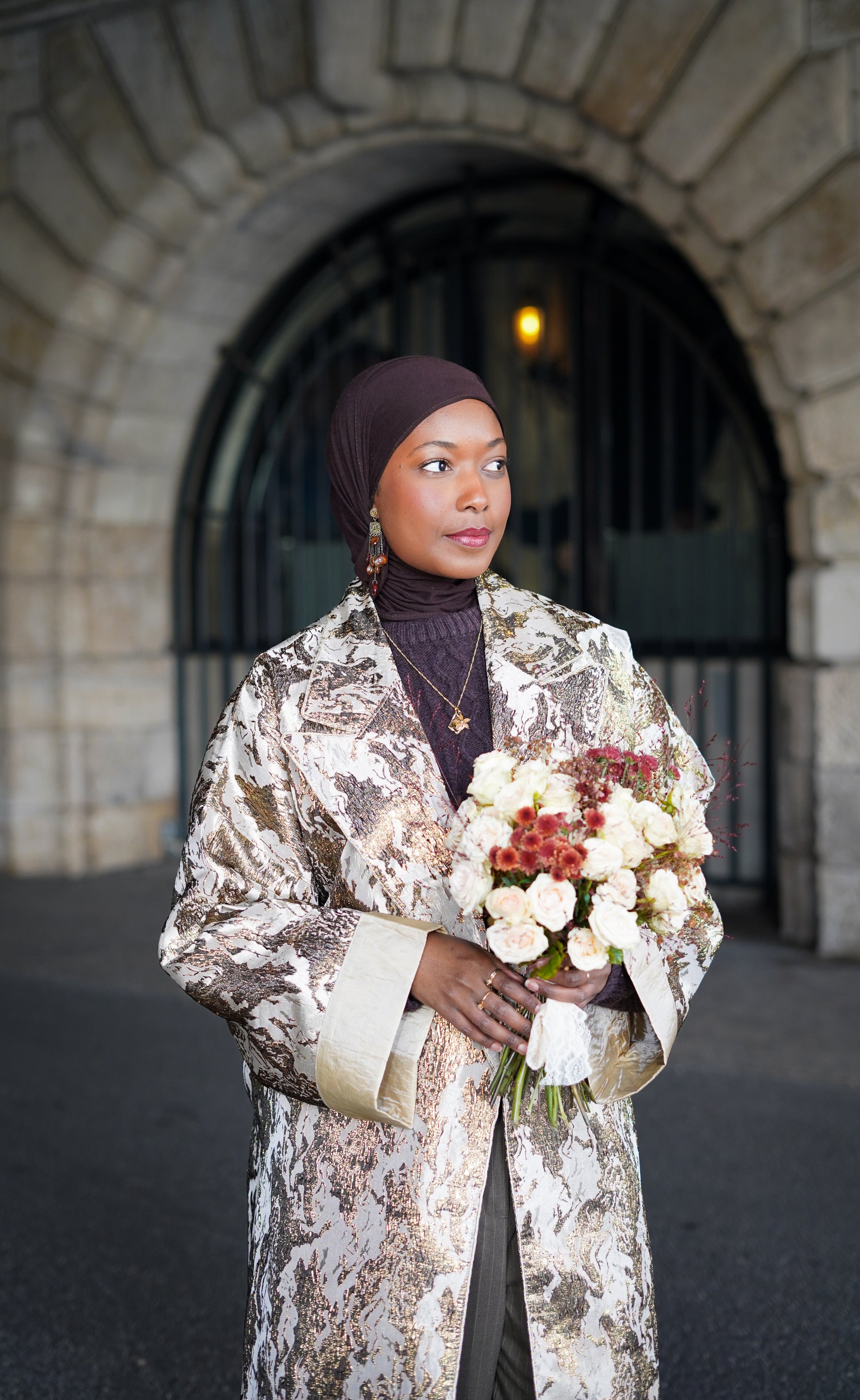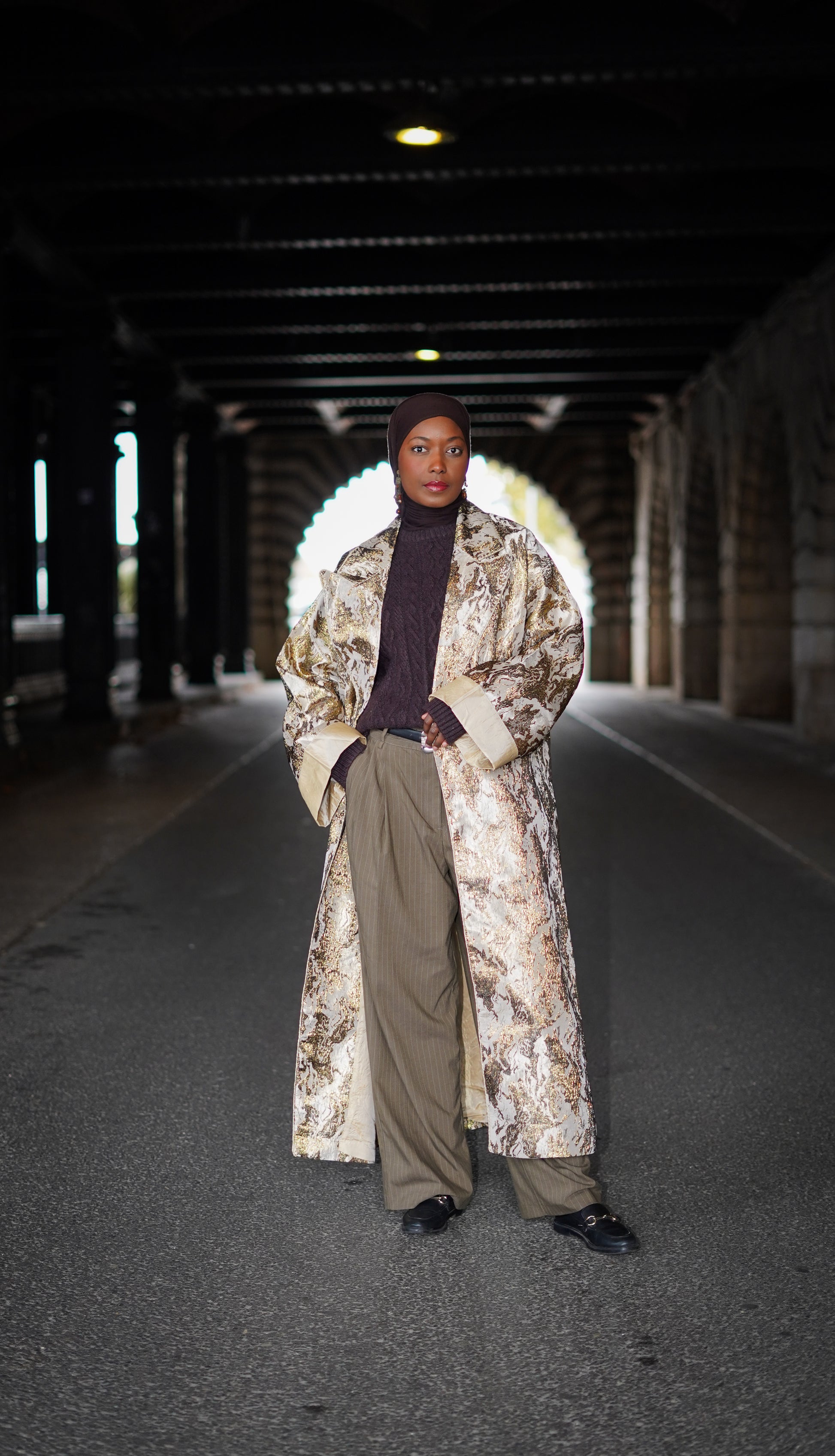 Ensemble kimono oversize et caftan sans manches, entièrement travaillé à la main selon le savoir-faire Maâlem. Le kimono est doublé en soie pour un confort et un tombé luxueux, tandis que le caftan, confectionné en satin de soie, apporte légèreté et élégance. Disponible en pièce unique et en série limitée, cet ensemble incarne artisanat, style et exclusivité.